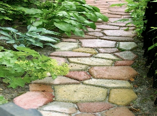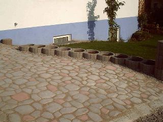 | 6. Wiederholen Sie den Arbeitsvorgang sooft, bis Sie mit der gewünschten Fläche fertig sind. Eine gerade Reihe erhält man ganz einfach, indem man die Form um eine Vierteldrehung weiterdreht. Auf diese Weise erhalten Sie ein immer wechselndes Steinmuster. Für rechtwinkelige Ecken dreht man die Form um 1/4 und setzt sie seitlich in der gewünschten Richtung wieder an. | |