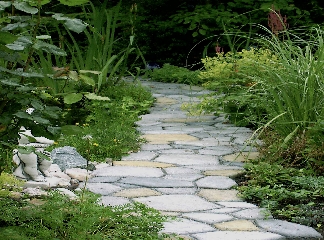 | 7. Um Kurven zu erhalten dreht man die Form im gewünschten Winkel und drückt sie einfach in die zuletzt gegossene, noch feuchte Pflasterfläche. Die anderen Abschnitte füllen Sie dann mit der Kelle. | |