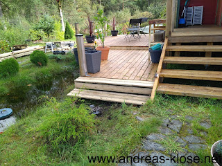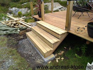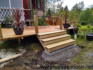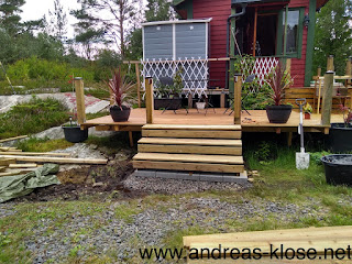 die obere Platte wird mit der bereits vorhandenen Platte vor der Hütte verbunden, dass ergibt ca. weitere 10 m2 und wird danach über 1 bis 2 Ebenen mit der unteren bereits vorhandenen Terrasse verbunden. Die untere Terrasse soll ca. 40 m2 gross werden. Die obere und untere Terrasse werden mit einer hoffentlich schönen Treppe verbunden.