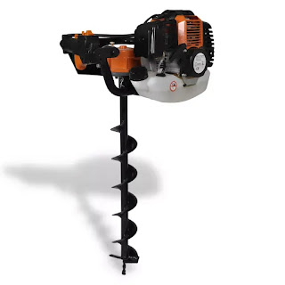 Da es sich hier um einen grossen Höhenunterschied mit teilweise massiven Fels und Lehmhaltigen Waldboden handelt, haben wir uns zur Erleichterung der Fundament Arbeiten, einen Benzin betriebenen Erbohrer gekauft.